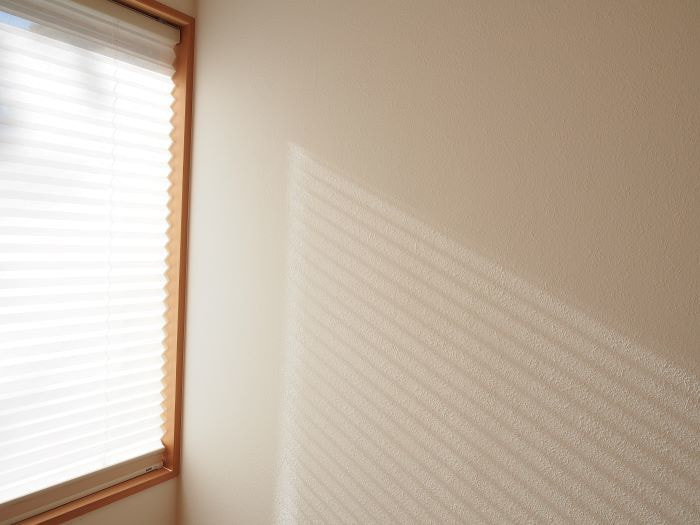 杉の造作材、紙と粘土塗料の壁、ナラの床板、。自然素材の良いところは、光の受け止め方が柔らかいので目に優しいこと。写真では見えないが、断熱材はセルロースファイバーを使用している。この相乗効果で、部屋は建設中から嫌な臭いがしないので、空気が澄んでいると感じられる。また、セルロースファイバーは、調湿・防音の効果も高く、室内の快適性を増している。